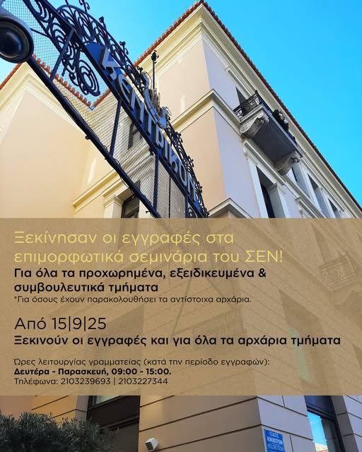 Οι ΕΓΓΡΑΦΕΣ για τα ΕΠΙΜΟΡΦΩΤΙΚΑ ΣΕΜΙΝΑΡΙΑ Σ.Ε.Ν. 2025-2026 έχουν ξεκινήσει!