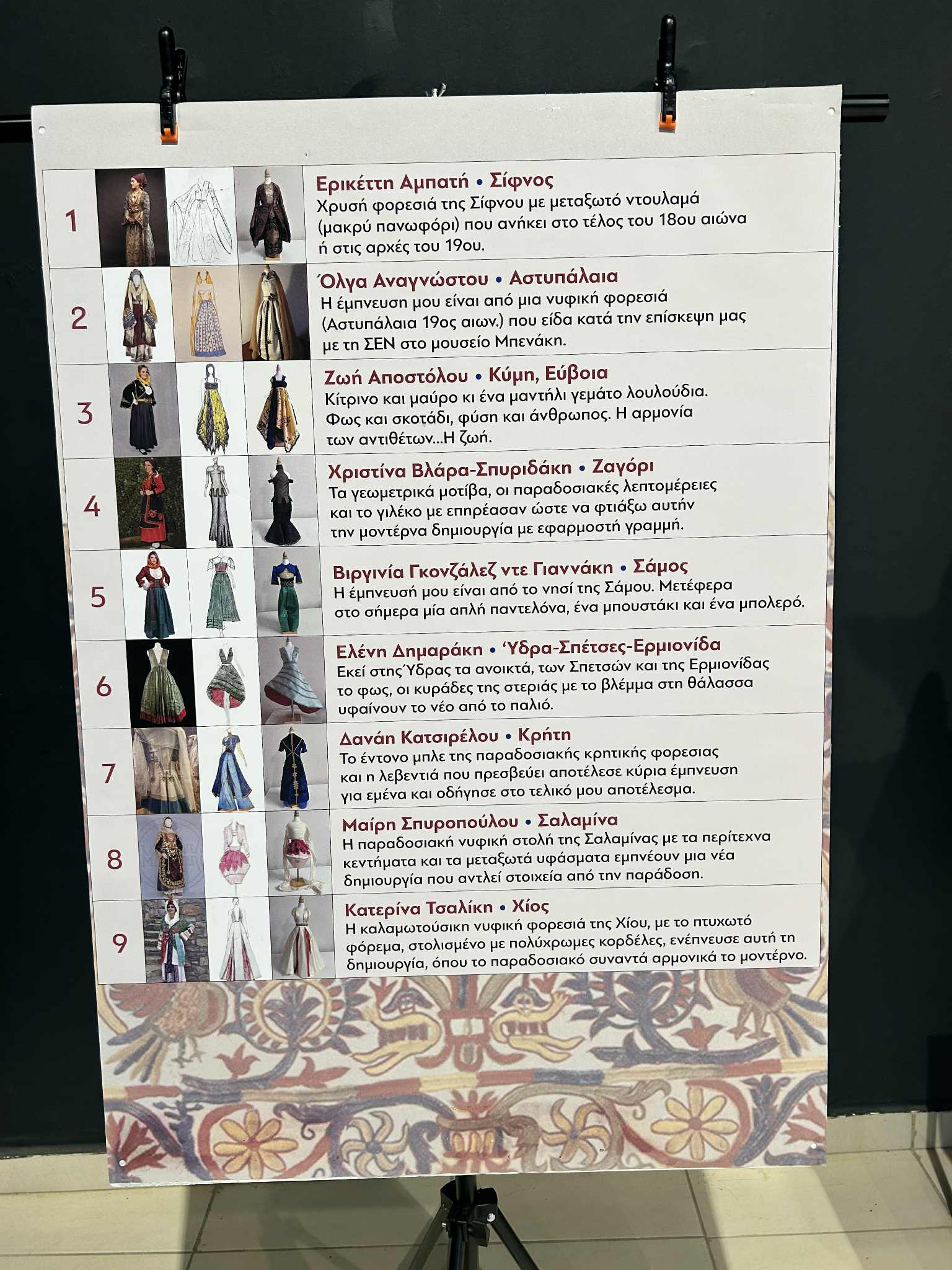 Υπό την καλλιτεχνική επιμέλεια και τον συντονισμό του Αχιλλέα Τακτικού, η ομάδα σχεδίου μόδας του Σ.Ε.Ν. δημιούργησε σε κούκλες-μινιατούρες σύγχρονα ενδύματα, εμπνευσμένα από τις παραδοσιακές φορεσιές, συνδέοντας το παρελθόν με το παρόν και αναδεικνύοντας τη συνέχεια της πολιτιστικής μας κληρονομιάς.