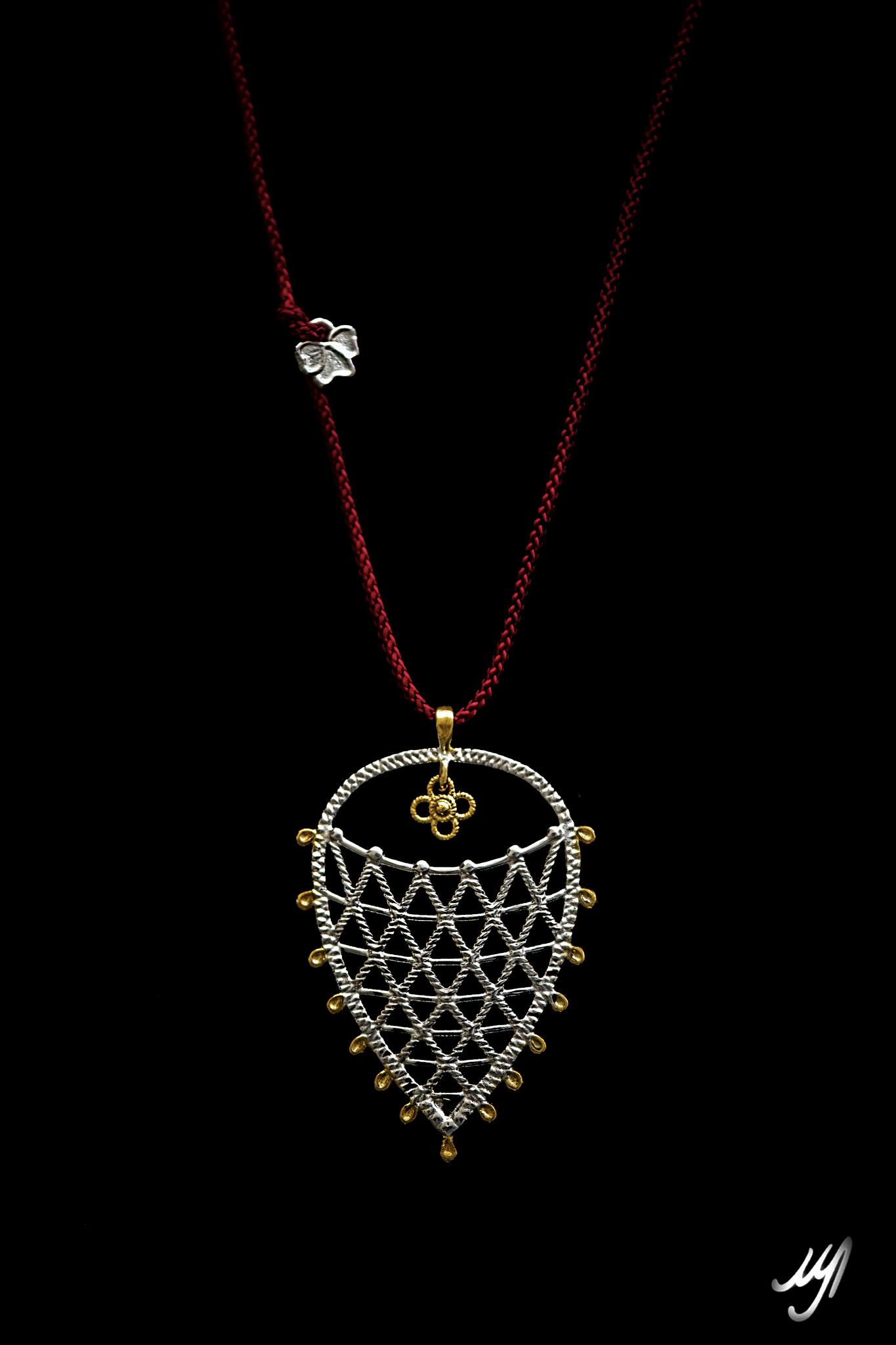 Μέσα από τον ανεκτίμητο θησαυρό χειροτεχνημάτων που φυλάσσονται στα αρχεία του Συλλόγου Εκπαιδεύσεως Νεανίδων (ΣΕΝ), ένα λεπτοδουλεμένο μοτίβο dentelle γίνεται η αφετηρία για τη νέα δημιουργία της Μαρίας Λιώνη. Με τη γνώριμη ακρίβεια και την καλλιτεχνική της ευαισθησία, η δημιουργός μεταμορφώνει την παράδοση σε ένα κόσμημα με καθαρή, σύγχρονη ταυτότητα.