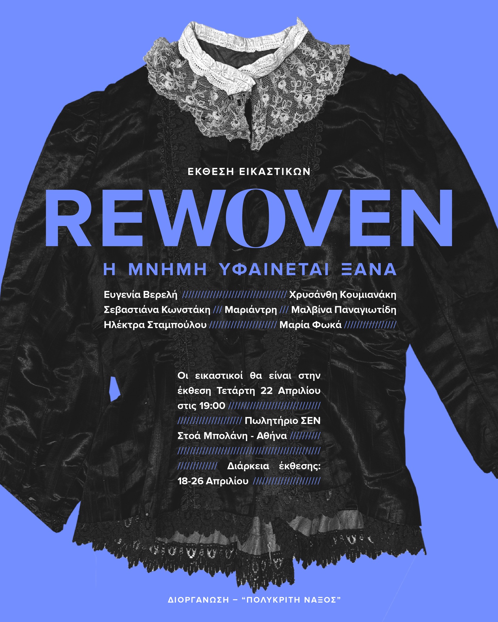 Η έκθεση «Rewoven – Η μνήμη υφαίνεται ξανά» παρουσιάζεται στην Αθήνα, από τις 18 έως τις 26 Απριλίου, στο πωλητήριο του Συλλόγου Εκπαίδευσης Νεανίδων (ΣΕΝ), στη Στοά Μπολάνη.
