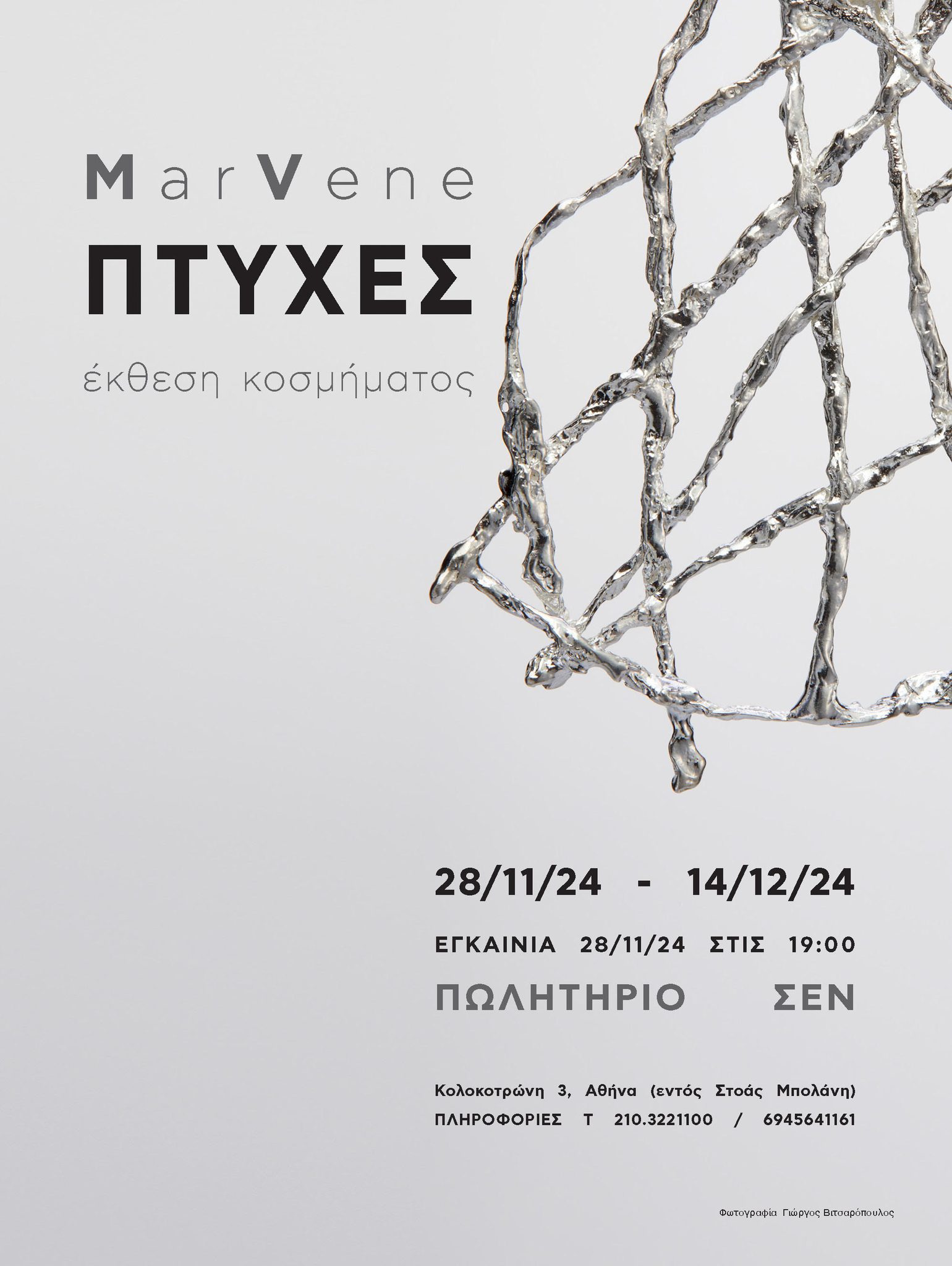 Από τις 28 Νοεμβρίου έως τις 14 Δεκεμβρίου, οι MarVene (Carlos Martin και Έφη Βενέτη) παρουσιάζουν τα κοσμήματά τους στο Πωλητήριο ΣΕΝ ξεδιπλώνοντας τις δημιουργικές τους ανησυχίες σε έναν διάλογο μεταξύ της παράδοσης του ΣΕΝ και της σύγχρονης δημιουργίας.