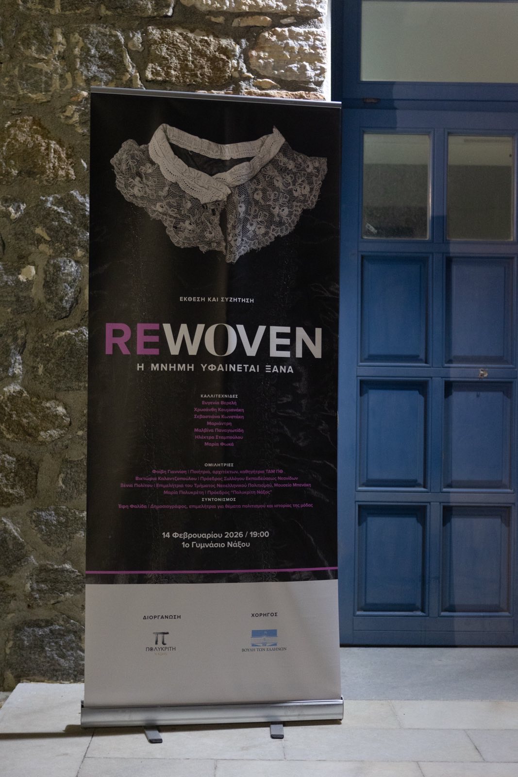 Το Σάββατο 14 Φεβρουαρίου συμμετείχαμε στη Νάξο στην έκθεση «Rewoven – Η μνήμη υφαίνεται ξανά», μια πρωτοβουλία της Μαρίας Πολυκρέτη και διοργανώθηκε από τον πολιτιστικό φορέα «Πολυκρίτη - Νάξος», με αφορμή ένα 19ου αιώνα νυφικό μπούστο, ένα μοναδικό οικογενειακό κειμήλιο!